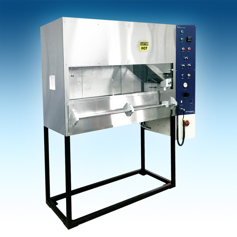 FAR 25.853 Boeing BSS 7365 معدات اختبار الحريق لمواد الطيران، حسب FAR الجزء 25 المرفق F الجزء VI، is designed to evaluate the flammability and flame propagation characteristics of thermal or acoustic insulation material used in an aircraft cabin when exposed to an electric radiant heat source and a defined flame source.